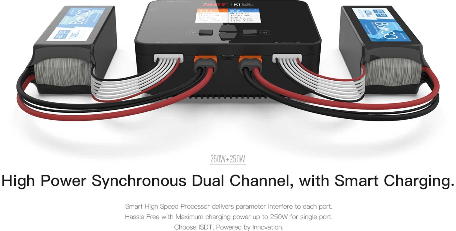 Der Smart High Speed Processor liefert Parameter für jeden Anschluss. Problemlos mit einer maximalen Ladeleistung von bis zu 250 W für einen Anschluss. Wählen Sie ISDT, angetrieben durch Innovation.