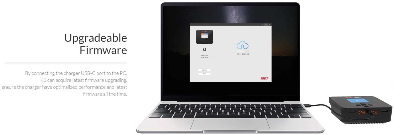 Durch den Anschluss des Ladegeräts an den USB-C-Port ihres Computers kann das K1 die neueste Firmware aktualisieren, um sicherzustellen, dass das Ladegerät immer die optimale Leistung und die neueste Firmware hat.