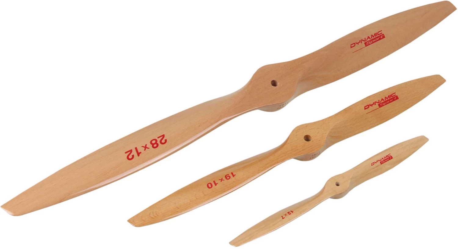 ROBBE „DYNAMIC“ Luftschrauben sind aus hochwertigen Buchenholz gefertigt und als Verbrenner,- oder Elektroluftschrauben erhältlich. Die Profilform wurde für optimalen Wirkungsgrad angepasst und erreicht hervorragende Leistungswerte bei gleichzeitig geringer Lärmemission. Alle Luftschrauben sind vom Werk aus sauber gewuchtet und mit hochwertigem Lack versehen. „DYNAMIC Electric“ ist ausschließlich für Elektroantriebe ausgelegt. „DYNAMIC Sport“ ist für Standardanwendungen, „DYNAMIC Performance“ – aus schichtverleimten Buchenholz, für gehobene Ansprüche an Verbrennerantrieben.