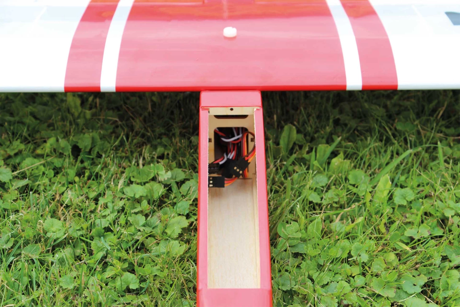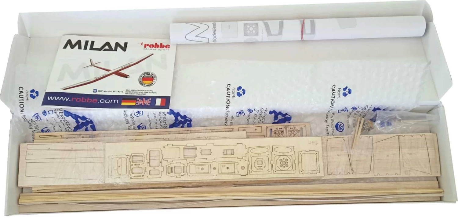 Der Rumpf wird in klassischer stabiler Holzbauweise aufgebaut, wobei die geschwungenen Seitenteile für eine elegante Optik sorgen. Das Kreuzleitwerk wird am Rumpf verschraubt und kann wahlweise abgenommen werden. Der Milan ist nicht nur ein alltagstauglicher Elektro-Segler, sondern der ideale Begleiter für den Urlaub.