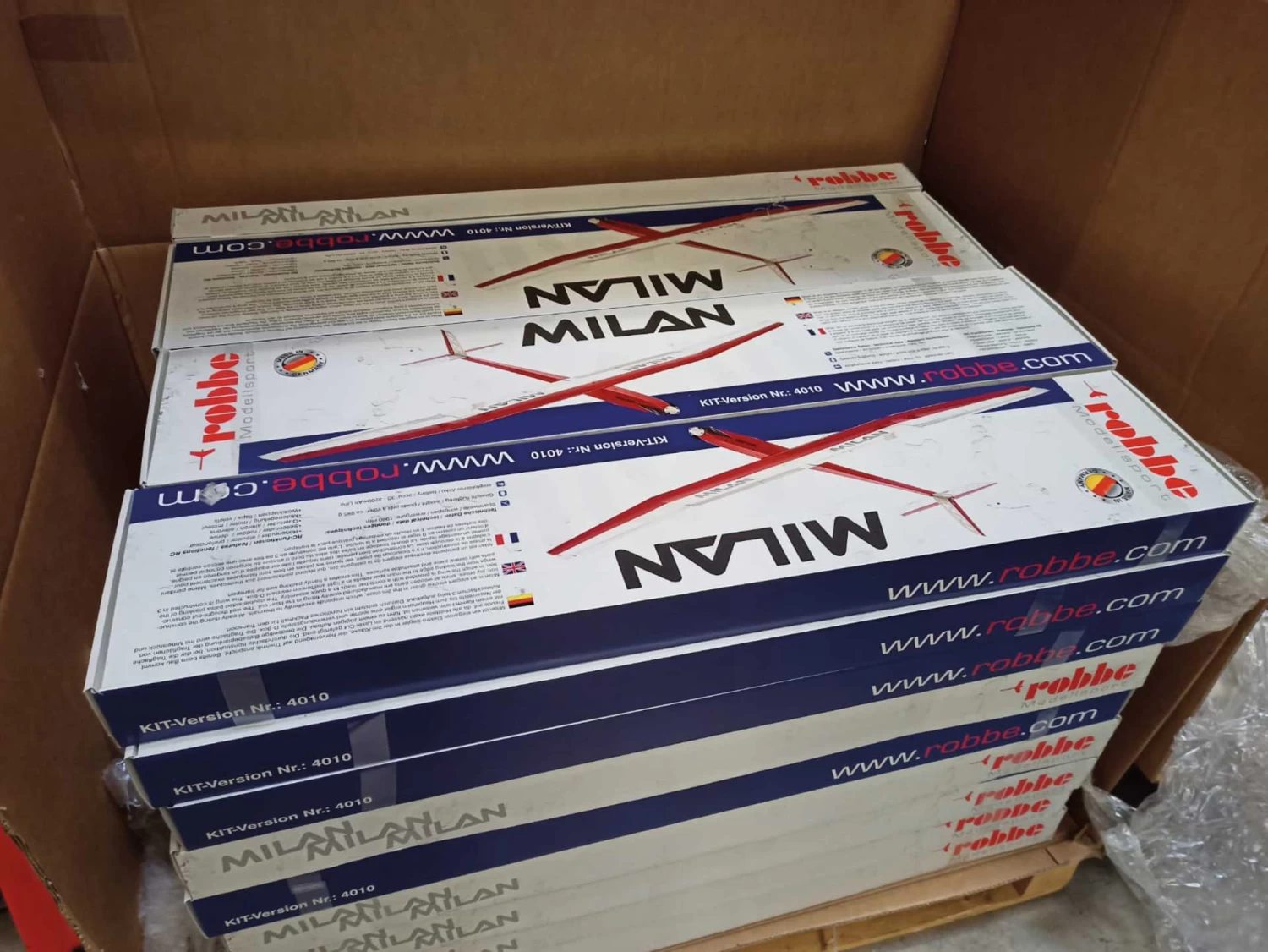 Der Milan wird mit einem leichten BL-Motor z.B. 2834-10 ausgerüstet, der eine Klappluftschraube 11 x 8“ antreibt. Der 3s Lipo-Akku mit 2200 mA wird über einen abnehmbaren Rumpfdeckel in den Rumpf eingesetzt. Er hat genügend Verschiebeweg, um ohne Trimmgewicht den Schwerpunkt exakt einstellen zu können. Mit ca. 995g Abfluggewicht gelingt ein sicherer Handstart. Nach 15 – 20 Sek. Motorlaufzeit hat man bereits eine Flughöhe von ca. 150 m erreicht. Bereits kleine Thermikbärte lassen sich mit dem Milan gut ausfliegen. Zusätzlich zu den Querruder in den Außenflächen hat das Flächenmittelstück Wölbklappen, die bis auf 90° ausgefahren werden können. Dadurch werden trotz der hervorragenden Gleitflugeigenschaften auch Landungen auf kleinen Landeplätzen sicher möglich.