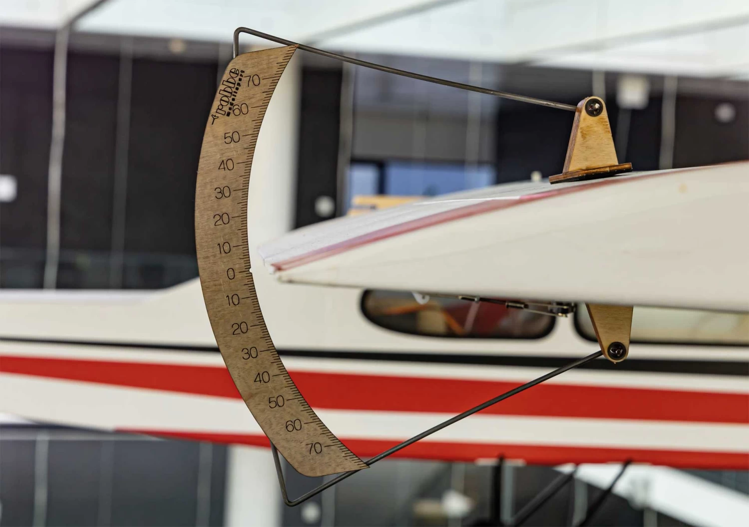 Einfaches und nützliches Werkzeug zur sauberen Einstellung der Ruderausschläge an Flugmodellen. Präzise und fein auflösende Skala. Bausatz, mit nur wenigen Handgriffen montierbar. Große Ausführung für größere Segelflugmodelle oder Motorflugmodelle.
