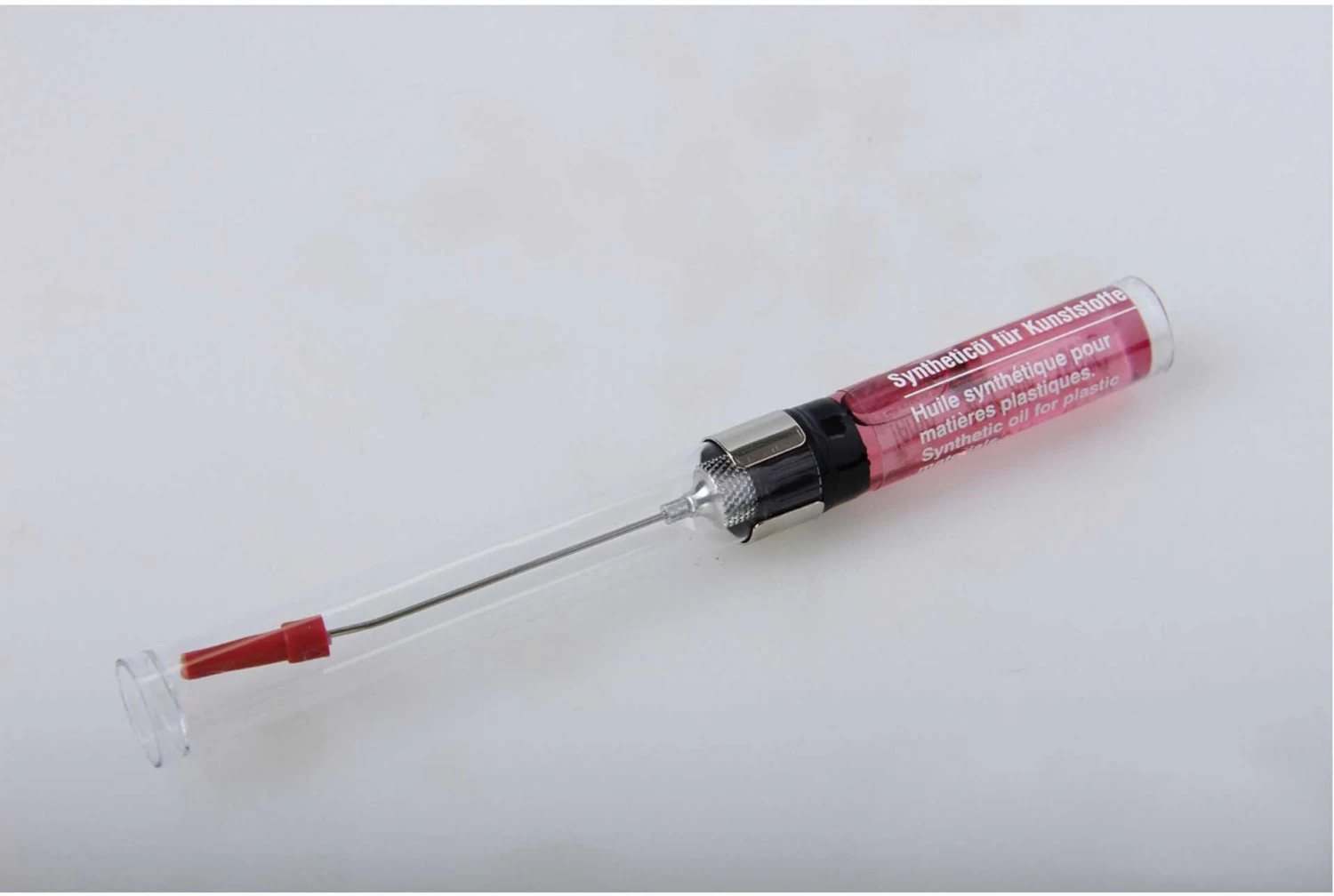 Da Kunststoffe bei Verwendung mineralischer Öle meist aufquellen, muss an diesen Stellen Siliconöl eingesetzt werden. Robbe-Syntheticöl für Kunststoffe ist in praktische Dosierpipetten abgefüllt, die ein punkt-genaues und sparsames Dosieren ermöglichen.